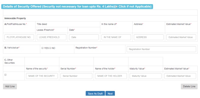 Step 16: In the fifth part, enter the details of the co-applicant (financial worth, details of existing loans, repayment and payment of interest details, etc.). Once done, check the boxes at the bottom of the form and click the Save as Draft button. Your information gets saved in the system, and you can access the details when you log in the next time.
