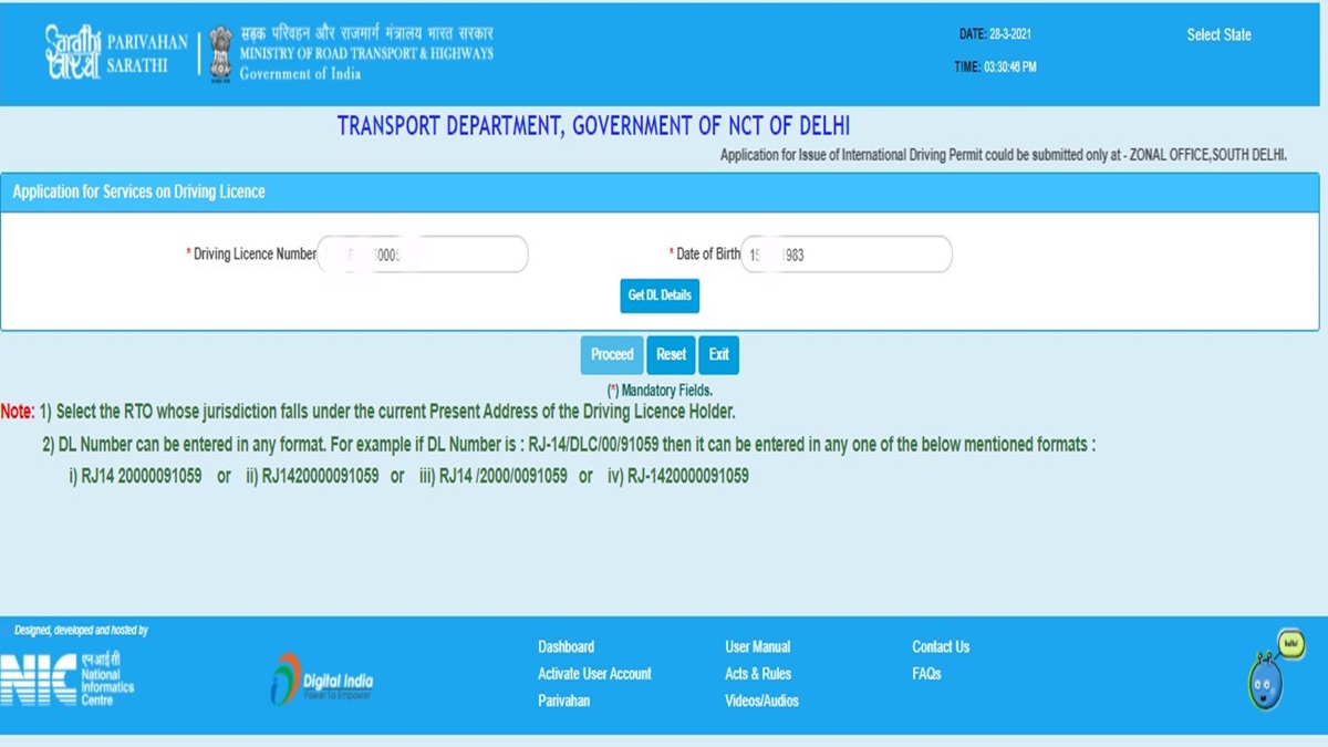 Step 4: Enter your driving license number and date of birth. Click on the button Get DL Details