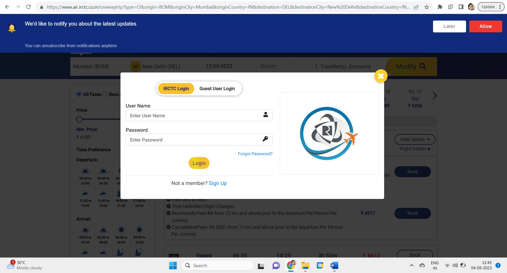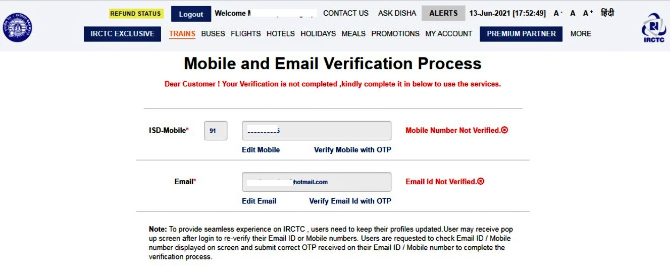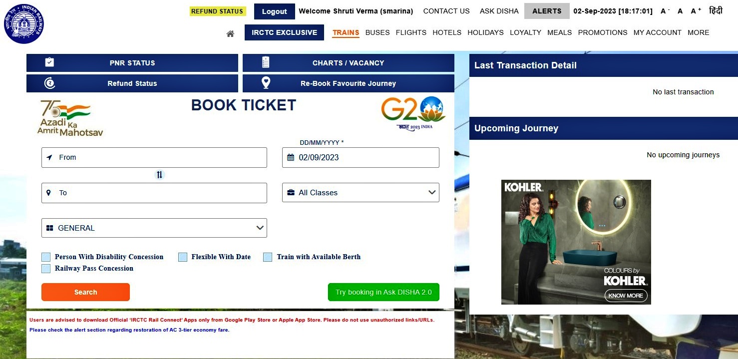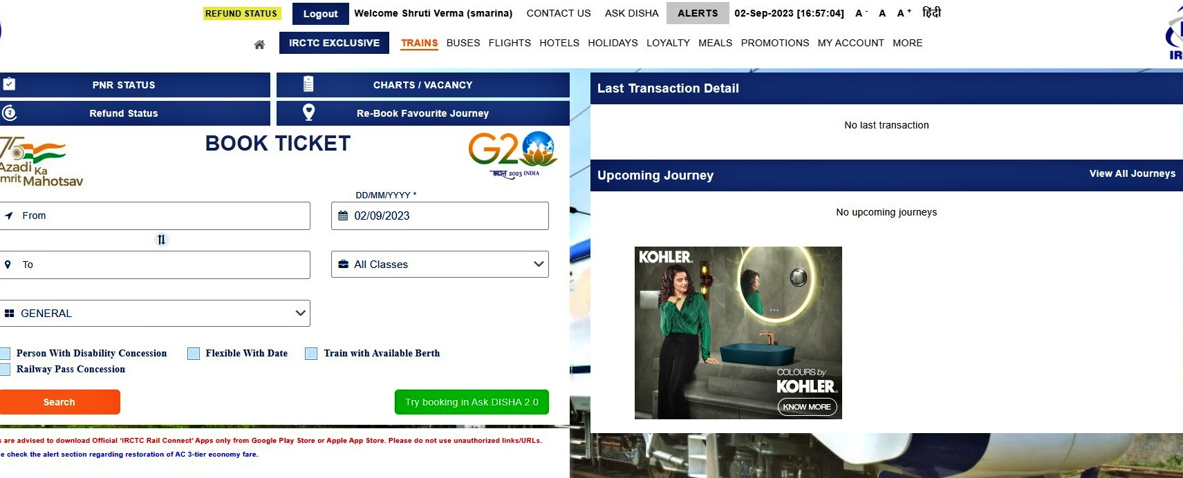 Step 1: Enter your user ID and password to log in to https://www.irctc.co.in/