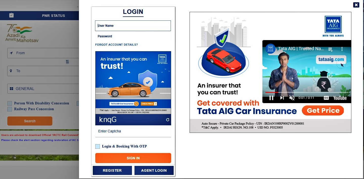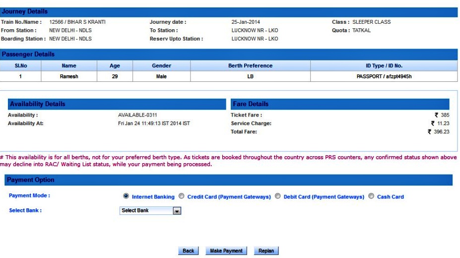 Step 5: Log in to your IRCTC account and make a payment for your seat.