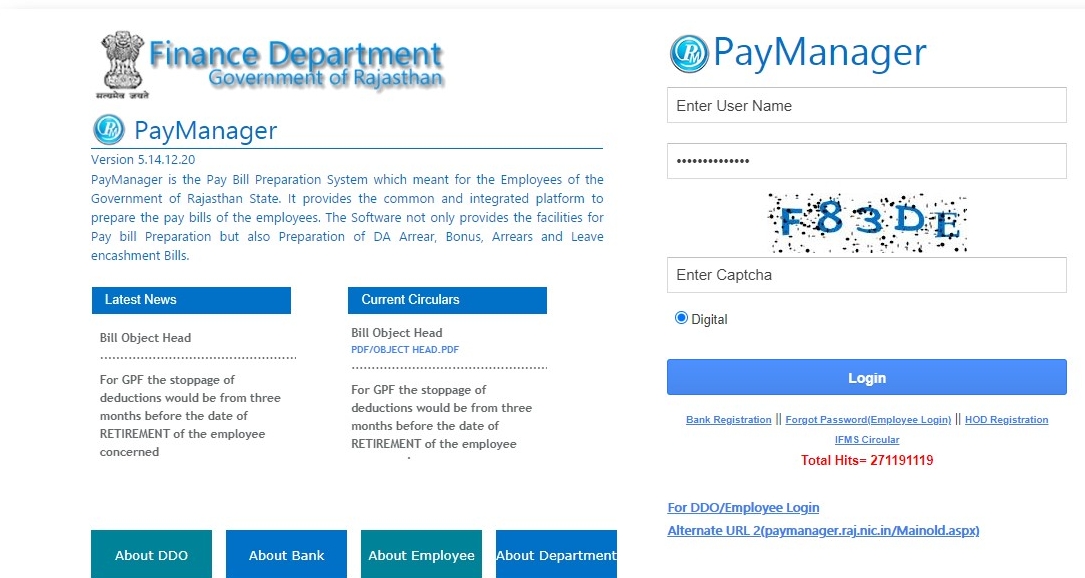To access the pay manager features you need to visit the pay manager login page here: https://paymanager.raj.nic.in/
